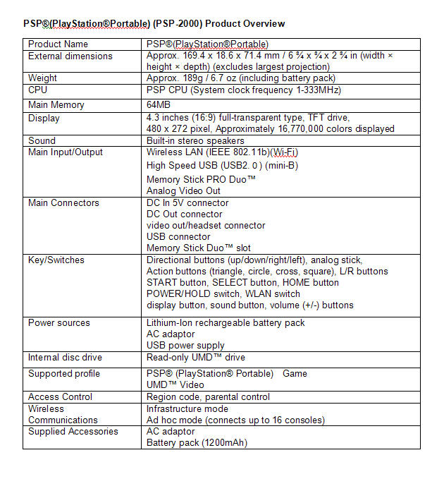 “Sony representatives also said PSP battery life increases to 8 to 10 hours in the new hardware, more than double the playtime of the current model.”