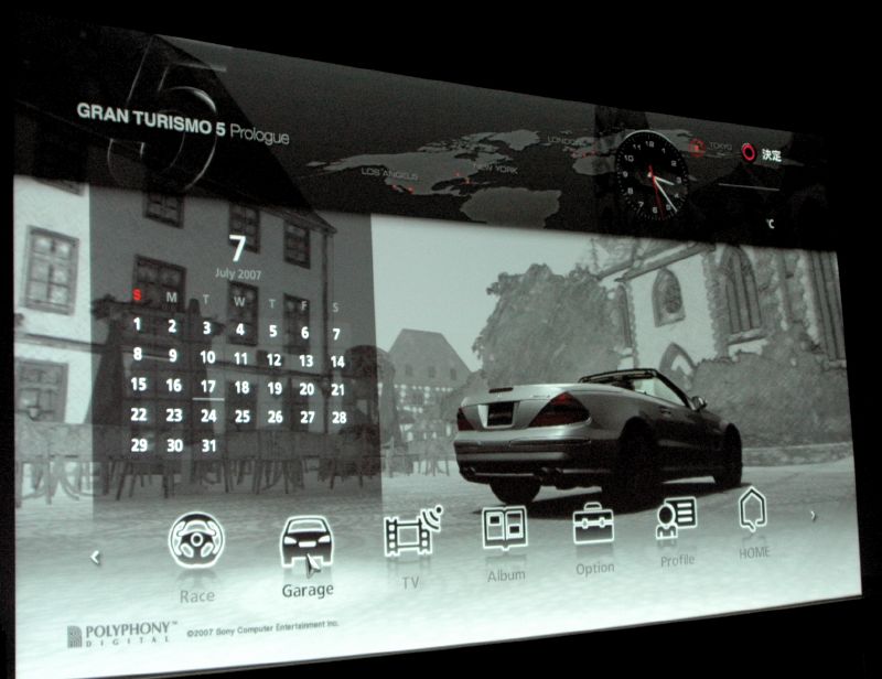 My guess is that logo represents either the downloaded replays of best times like GT-HD does now, or it’s where you can watch races that others are taking part in, a feature that has been discussed by Polyphony.